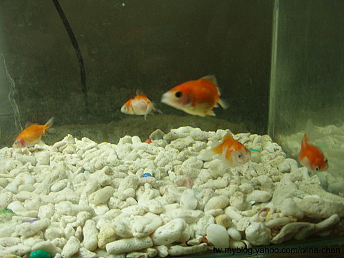 之前養的唯一球魚已經壽終正寢,養水一週改養北京獅頭金魚,癟嘴的後方就是紅蔥頭(因為頭瘤紅紅的又聰明)